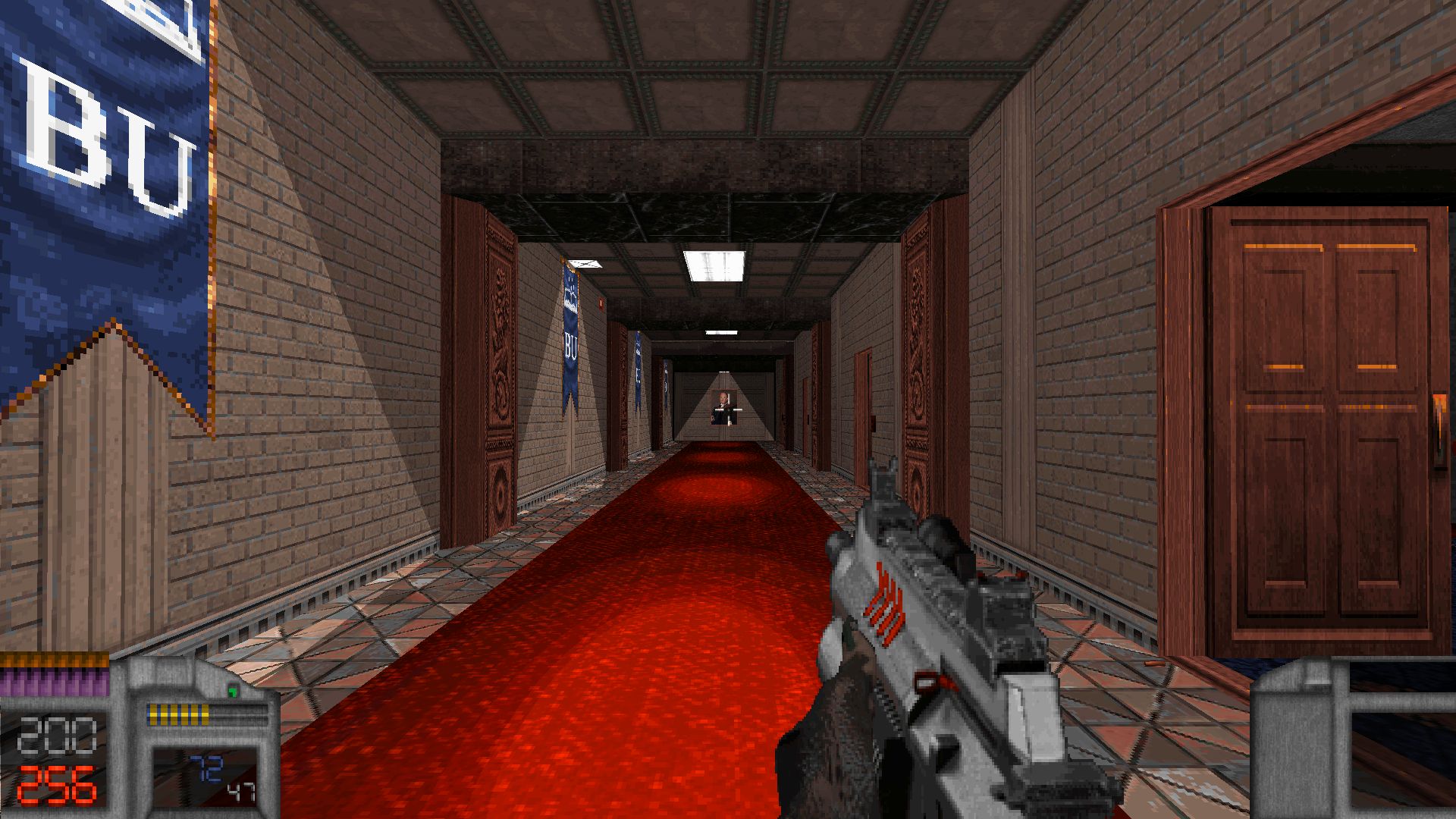 The episode begins with an epic cutscene that borrows from the likes of Deus Ex, Neon Genesis Evangelion (one of the few animes I actually like) and probably a whole bunch of stuff I didn't recognize. James has built quite an expansive universe over the course of the game's development with plenty of lore to match it, and it is during scenes like this that it truly shines through. But I'll say the cutscene could've been shorter: I cannot recall coming across a cutscene this long in a shooter in a long time. A lot of the dialog could've been cut without losing anything of significance. This, as it turns out, will be a recurring issue throughout the episode.