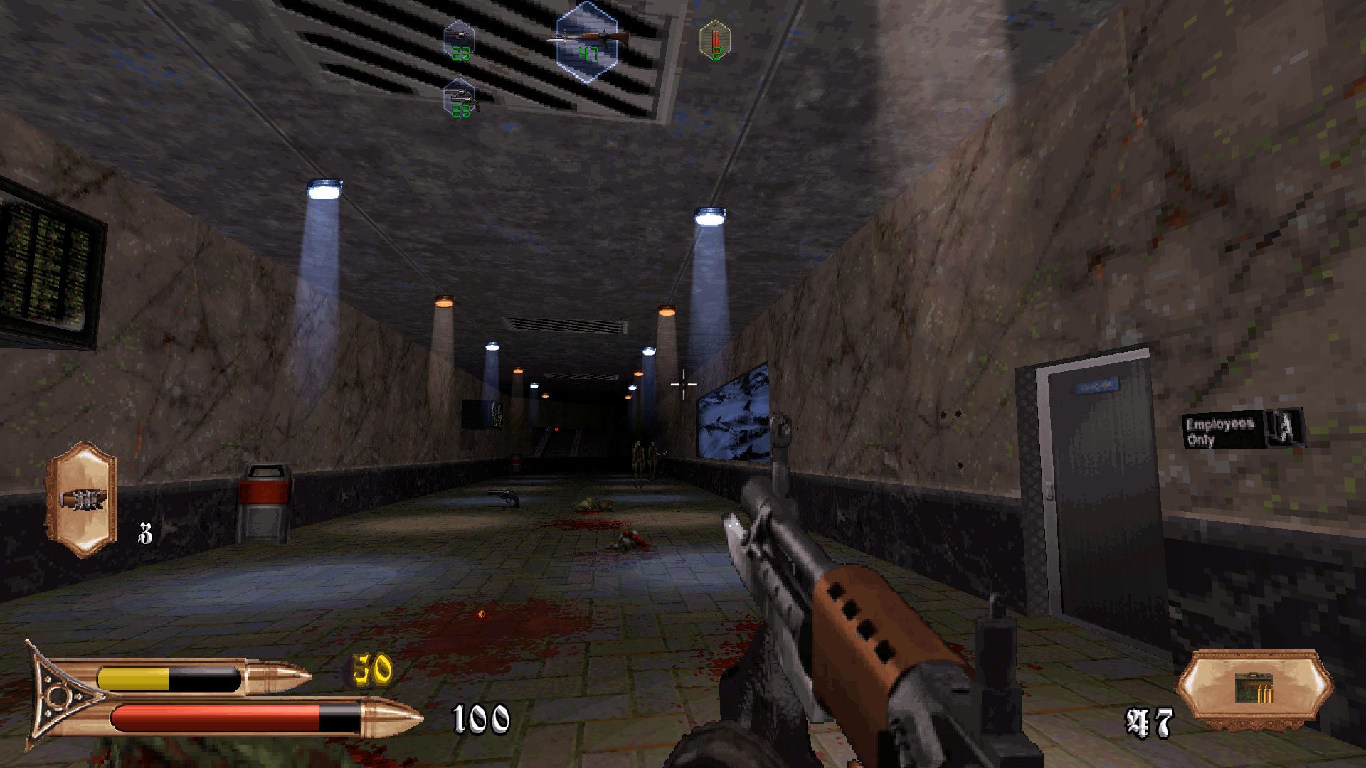 the mood with frosty colored lighting (you can almost feel the cold) and various spotlights. You're followed by enemies that cannot be killed, so