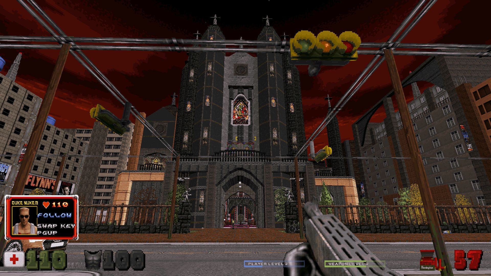 These being old maps, there's less space to move around. The sidekick getting between you and the enemy is quite a perennial issue, especially in Caribbean. While it's less noticeable in some of the more open DC maps, you might be better off disabling the second character altogether (although I can see this going against the whole spirit of the mod). This wasn't such a big issue in the Alien Armageddon episode with its custom-made maps and their more generous layouts, but it's definitely more noticeable here in the '90s maps. There were also instances where it felt the corridors aren't large enough to accommodate all the frenetic action, particularly when larger monsters and explosions were involved. As for other complaints, the slide kick is still more trouble than it's worth and it'd be better if the game's autoaim didn't target civilians or the sidekick.