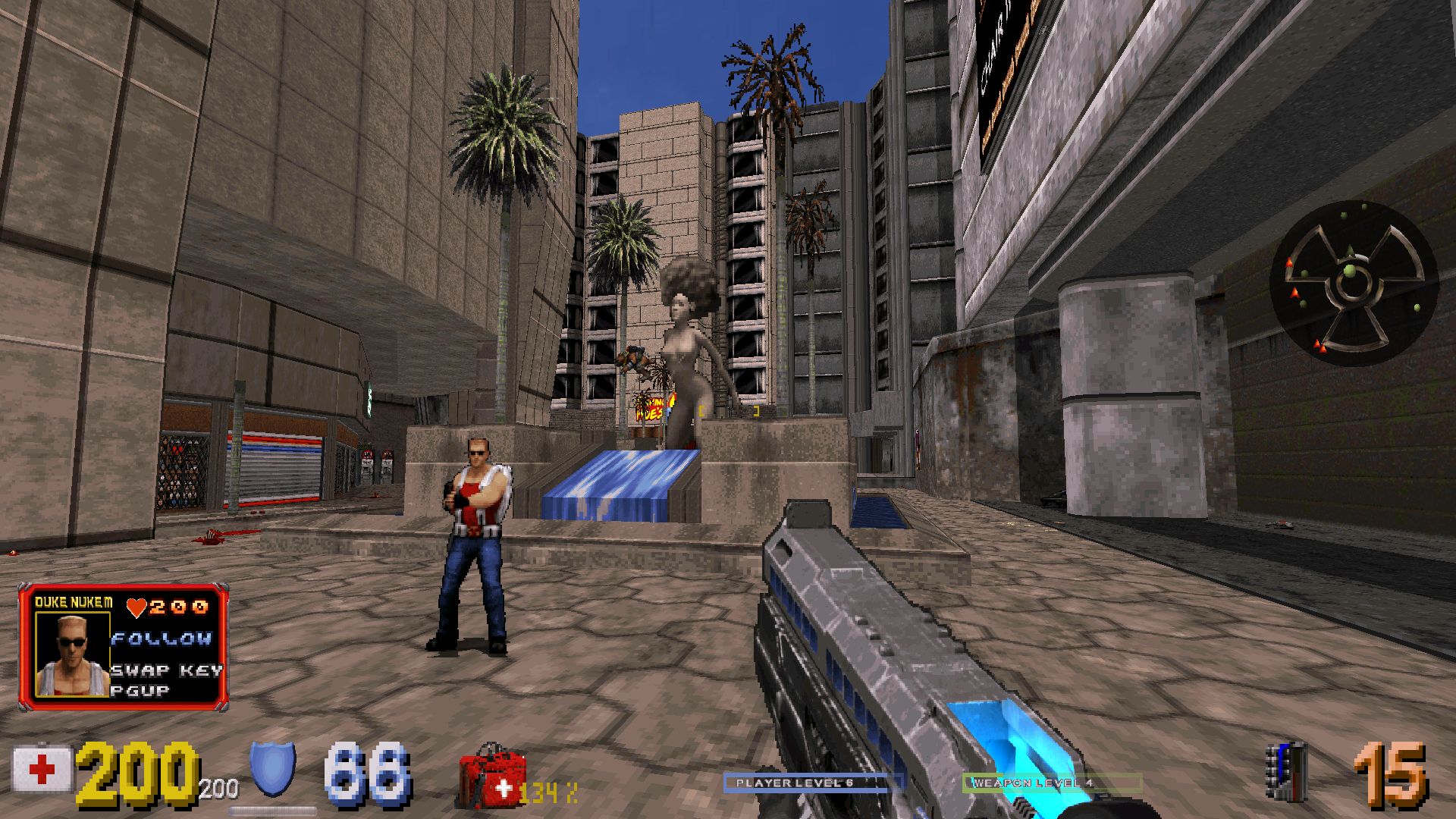Duke and his lady sidekick (or am I being sexist in assuming it's not the other way around?) Bombshell are back at it again, this time bringing mayhem and alien ass-kicking all over Washington, DC, and the warm waters of the Caribbean. The second major release of Alien Armageddon retains the mod's core gameplay elements without any major changes. There are a few new enemies (including bosses) and weapons, but the main selling point is the inclusion of the two good Duke3D mission packs, Duke It Out in DC and Caribbean: Life's a Beach. Design-wise the maps are the same as before, but their presentation is more vivid and modern with the inclusion of civilians, new sprites, staged battles and cutscenes. The DC episode also has a cool Doom-like intermission screen that shows your progress across the district. One of my favorite additions is a brand new soundtrack for DC; the original release merely recycled tracks from the base game, which gave the whole thing a bit of a cheap, dull atmosphere. I don't know if the tracks were specifically made for the corresponding maps, but they fit in really well.